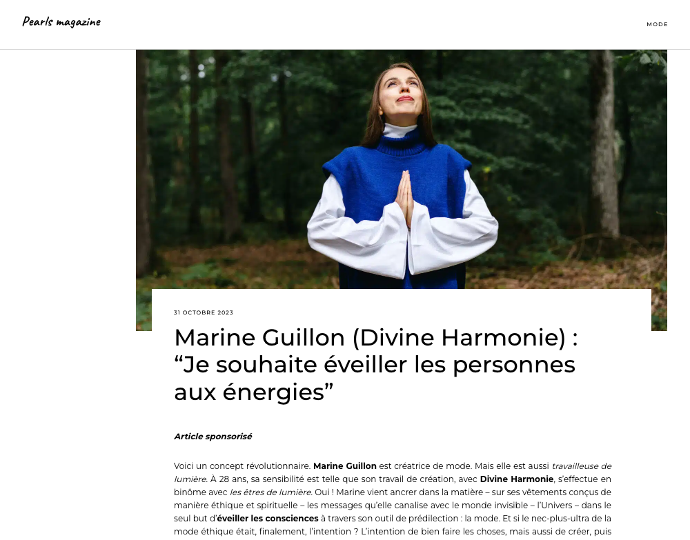 Interview of the 31st of October made by Anne-Sophie Castro, founder of Pearls Magazine.